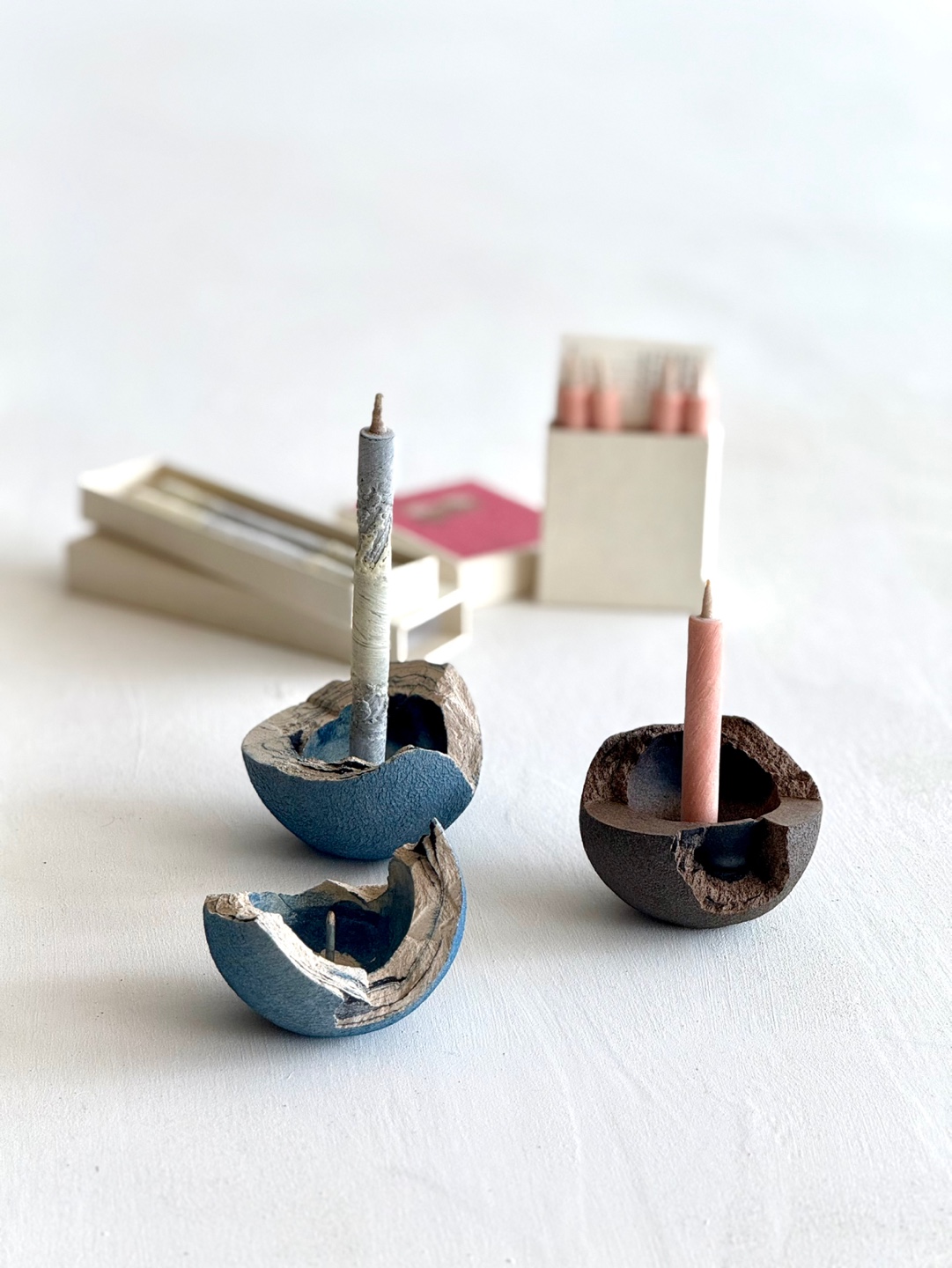 오키나와현 미야코지마에서 제조되는 Cosmic hemp(마 숯)을 사용한 촛대.